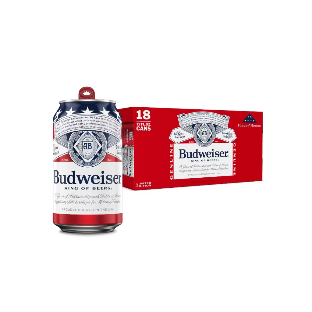 18-pack of Budweiser cans: classic, full-bodied American lager with a bold, satisfying flavor.