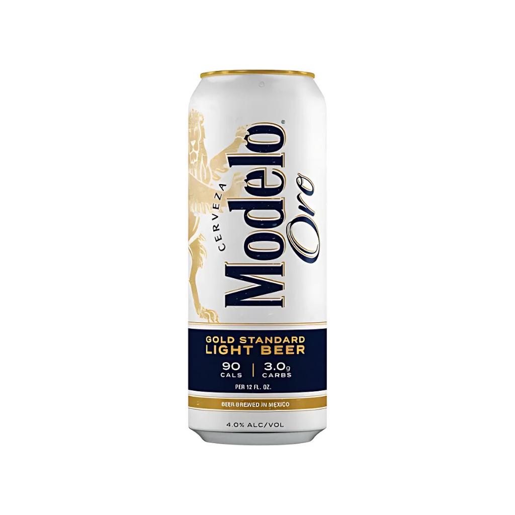 Modelo Oro brings lighter, easy-drinking refreshment in a 24 oz can. Crisp, golden, and sessionable.